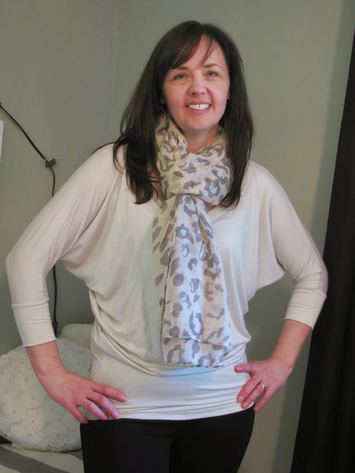 Okay I know this totally washes me out, but my current "go to" top - as in if it's clean I'm wearing it, is a very similar design in my signature black. So I really think if I can add some color, or maybe a black scarf I will wear this comfy cosy top.